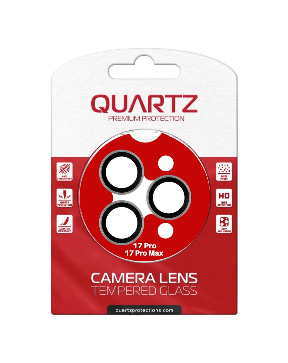 QUARTZ HD Tempered Glass with Metal Ring for iPhone 17 Pro / 17 Pro Max Back Camera (BLACK & GRAY)